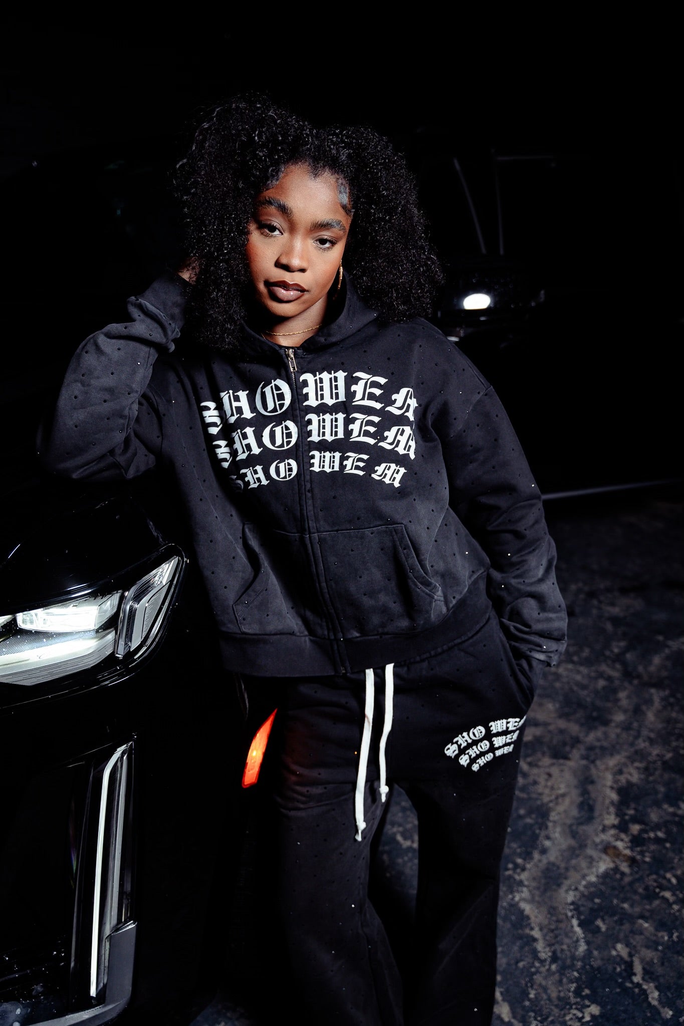 ‘MIDNIGHT’ RHINESTONE ZIP UP