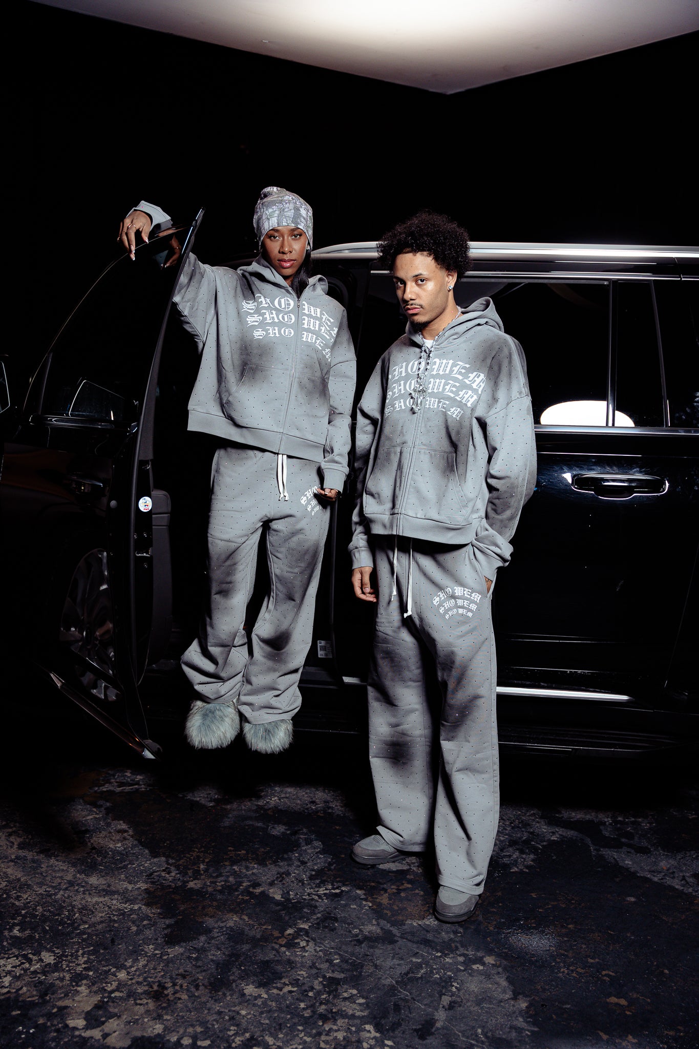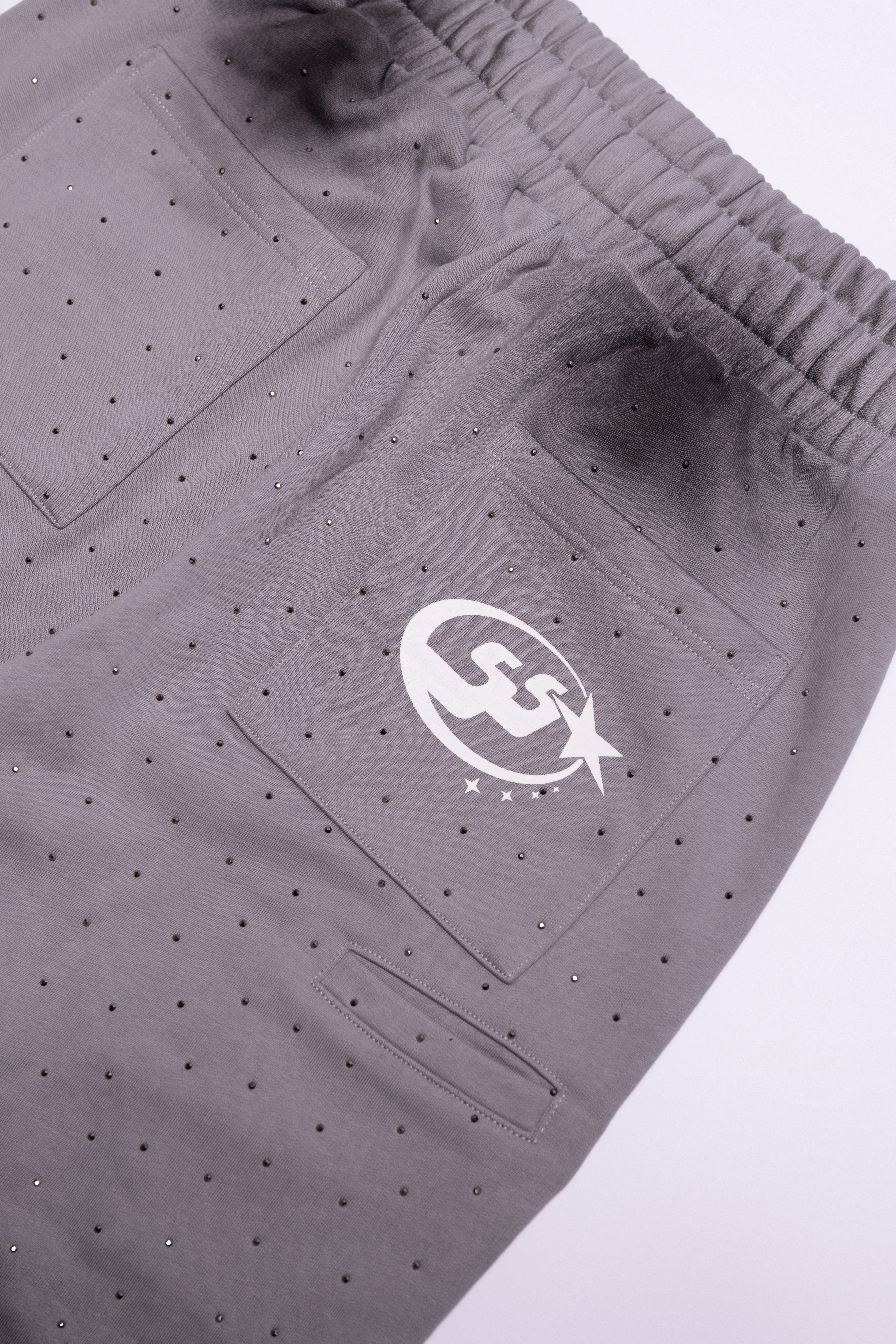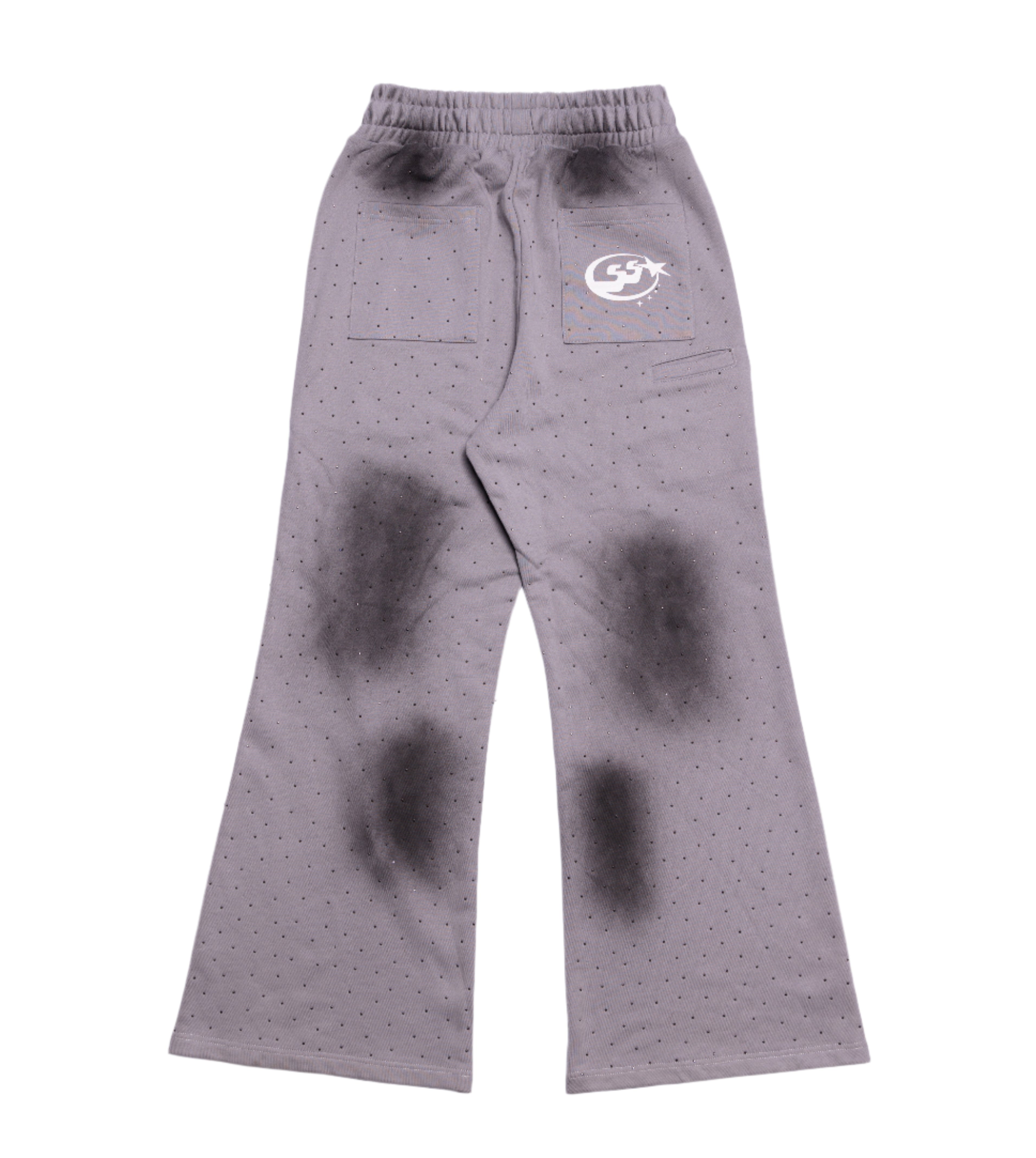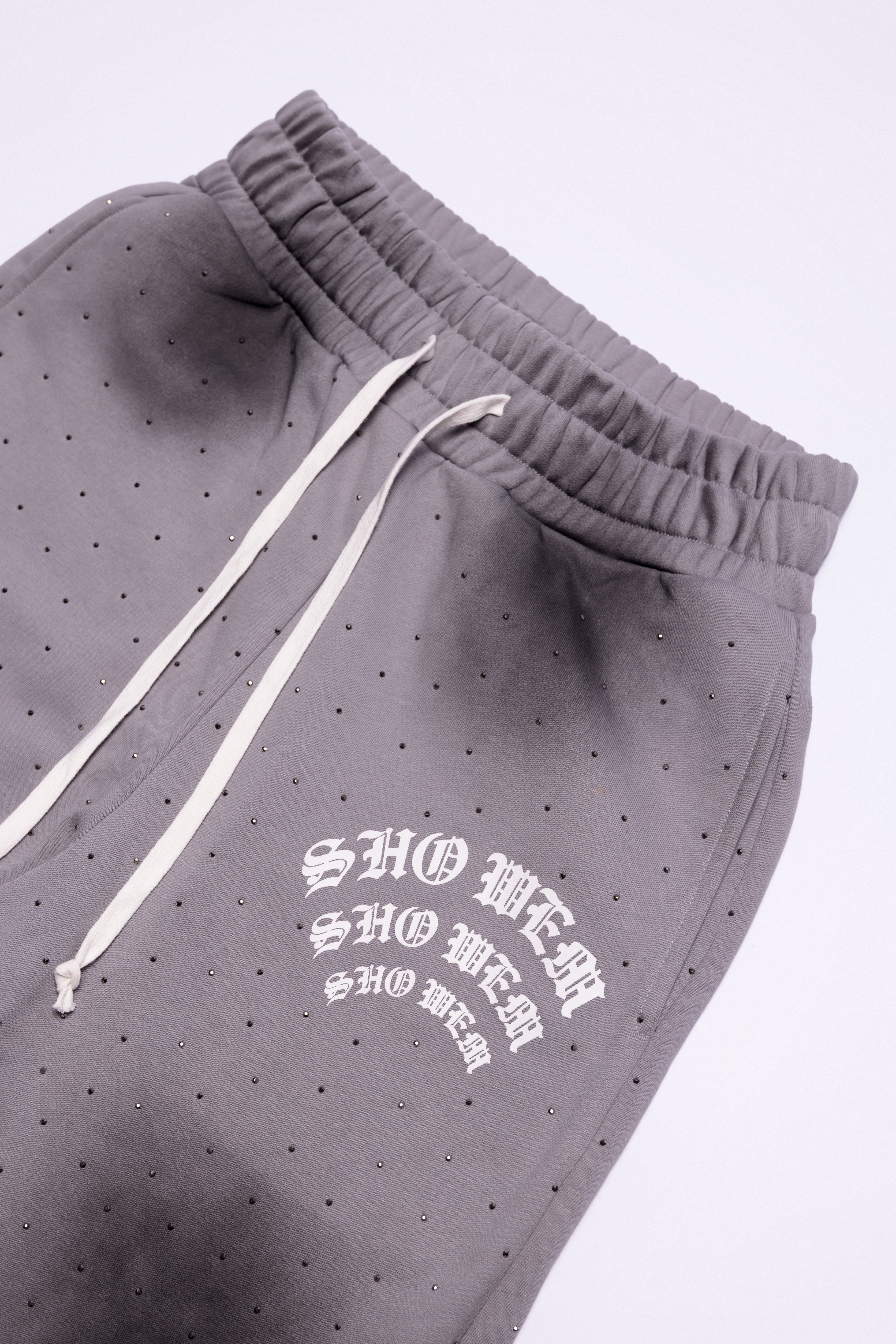 ‘SHADOW GREY’ RHINESTONE WIDE-LEG PANTS